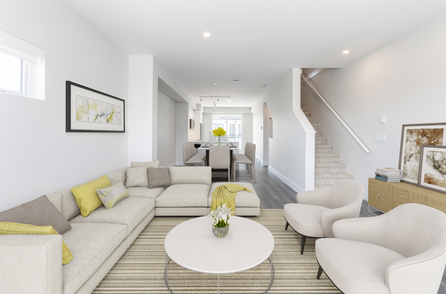 The Townhomes feature 1400sqft on three floors, featuring 3 bedrooms and 2.5 bathrooms, waiting to be transformed into the perfect living space for your life. Your townhome comes with a spacious tandem garage on the main floor, perfect for vehicles, storage, and more.